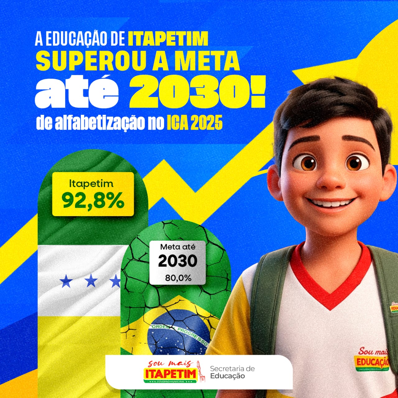 A Educação de Itapetim (PE) conquistou mais um importante resultado. Em 2025, o município alcançou média de 92,8% no Indicador Criança Alfabetizada (ICA). O percentual revela que as crianças matriculadas na rede pública de ensino, que concluíram o 2º ano do ensino fundamental, apresentam um nível elevado de alfabetização, demonstrando habilidades básicas de leitura e