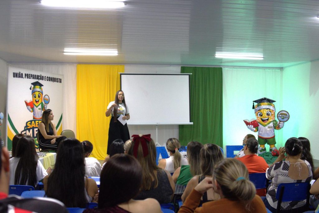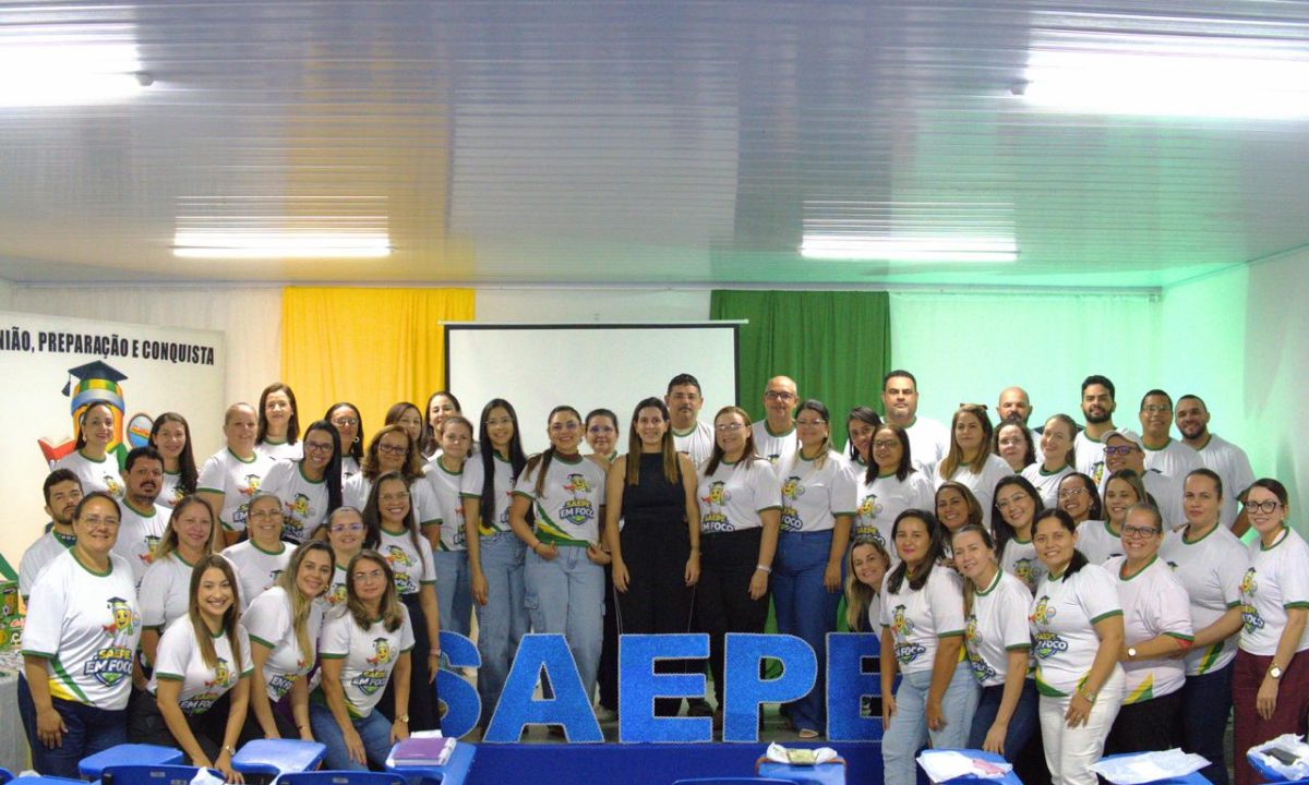 Durante o momento, a prefeita Aline Karina anunciou o “Bolsa SAEPE”, um incentivo financeiro destinado aos professores envolvidos no projeto.