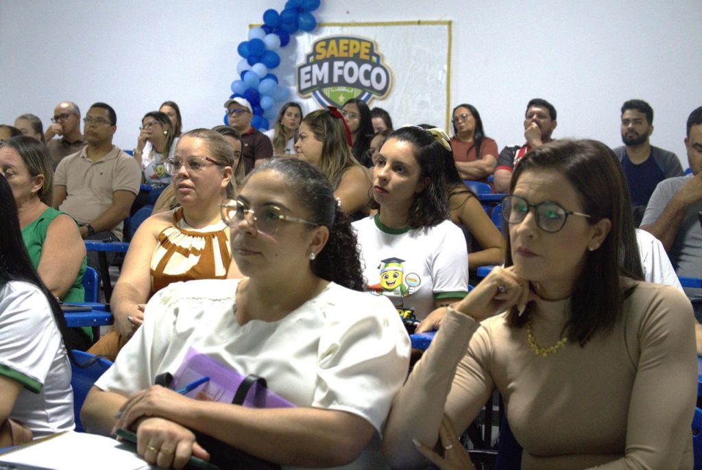 Estiveram presentes todos os professores das turmas do SAEPE (2°, 5° e 9° anos do Ensino Fundamental), gestores escolares, supervisores e professores de Língua Portuguesa e Matemática do 6° ao 9° ano.