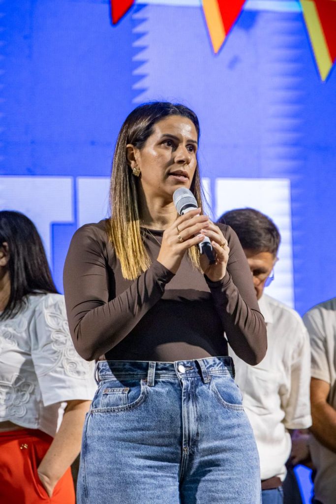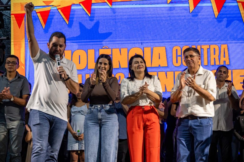 Diversas lideranças locais e estaduais estiveram prestigiando o evento na Praça Poeta Rogaciano Leite.