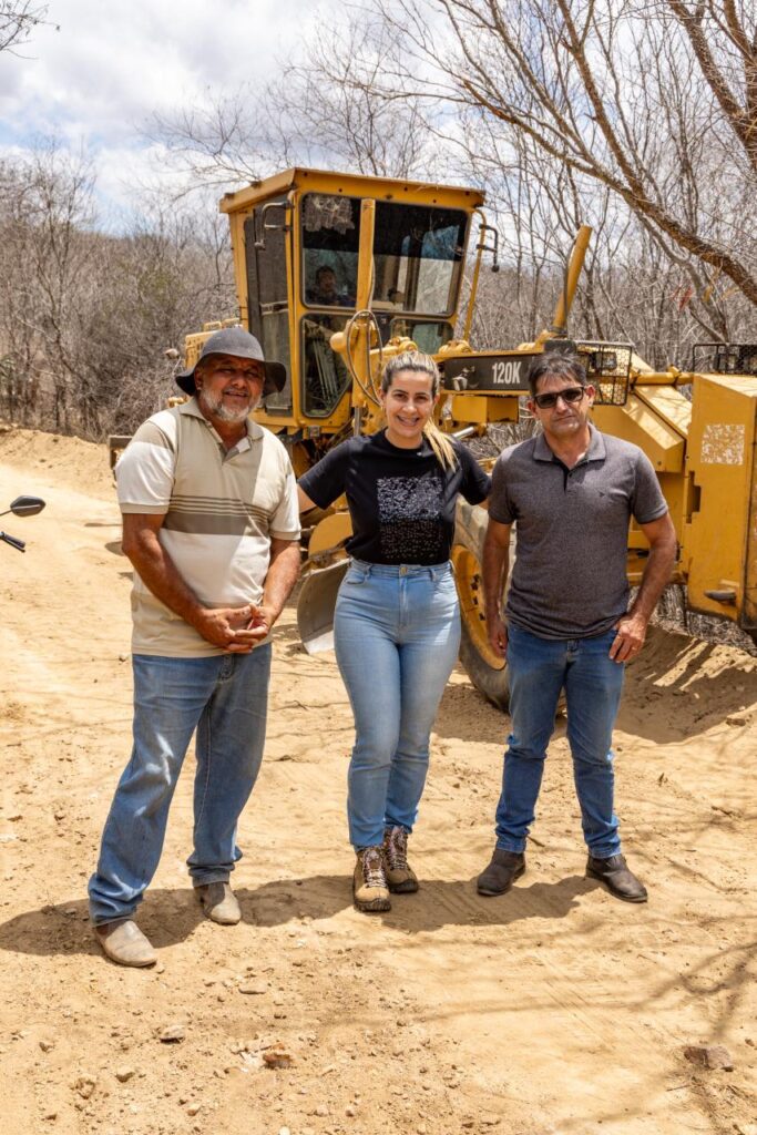 A prefeita Aline Karina, acompanhada do secretário de Agricultura, Clodoaldo, e do diretor de Estradas e Rodagens, Silvanio Lucena, realizou uma vistoria nas obras. Durante a visita, a equipe acompanhou de perto o andamento dos serviços e reforçou o compromisso da administração municipal em investir continuamente para melhorar ainda mais a infraestrutura rural.